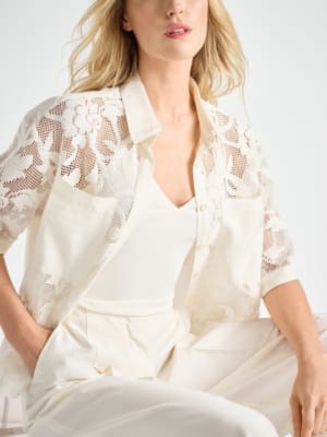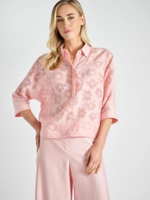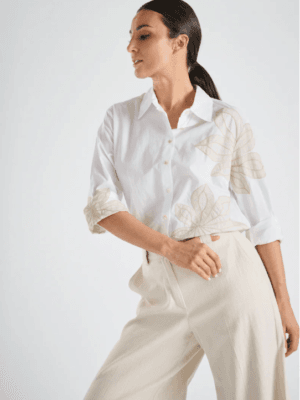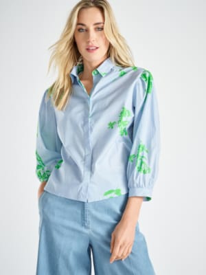 Bloes met bloemenborduursels, verfijnd met subtiele pailletten.