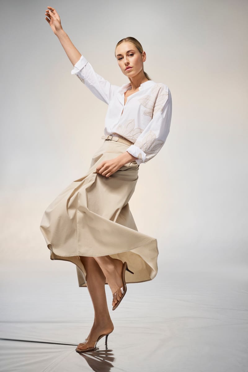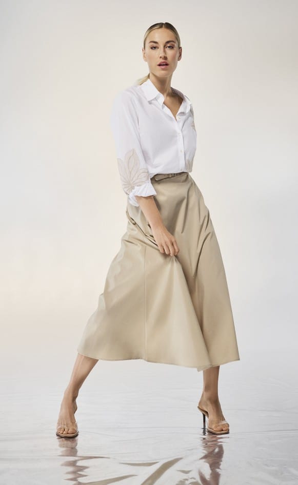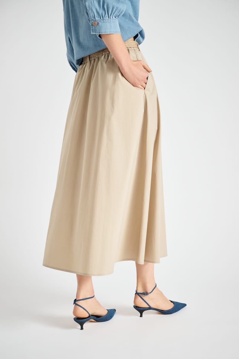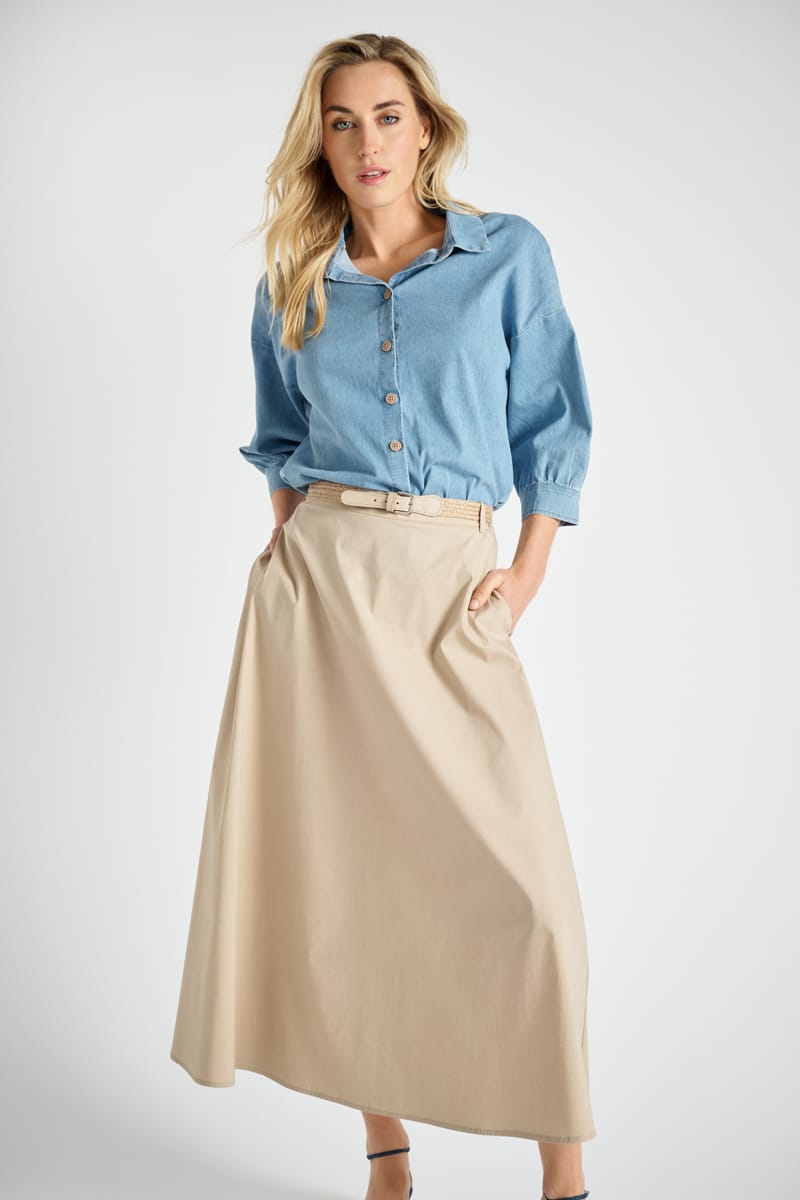 Luchtige en super comfortabele rok met mooi inbegrepen riempje. A-lijn en kuitlengte om grote stappen te kunnen zetten naar waar je ook gaat.