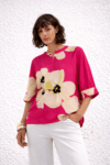 Fuchsia damesbloes met bloemenprint