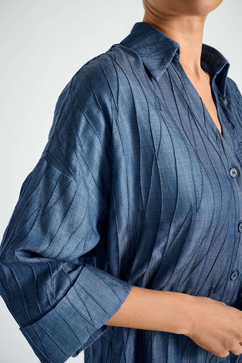 Denim geborduurde hemdjurk