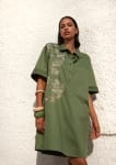 Luchtige opengebreide cardigan in een stijlvolle kaki tint. Dit zomerse vest met korte mouwen is ideaal als extra laag over een blouse, top of jurk en perfect voor warme dagen en frisse avonden.