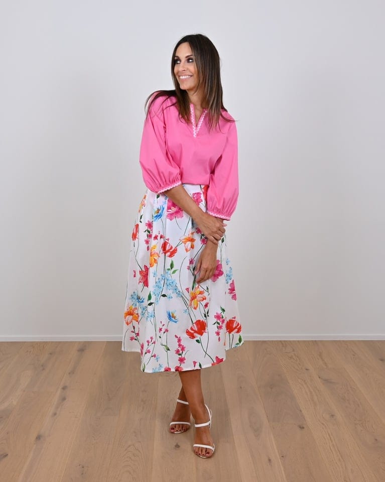 U bevindt zich hier: Home1 / Webshop2 / Bloes3 / Fuchsia bloes met broderie