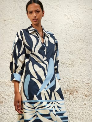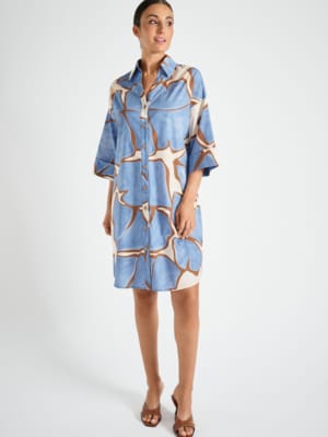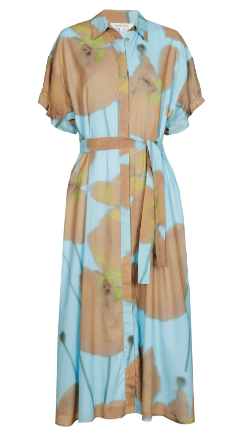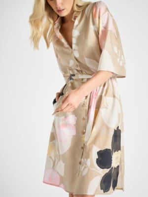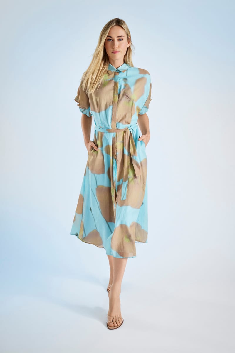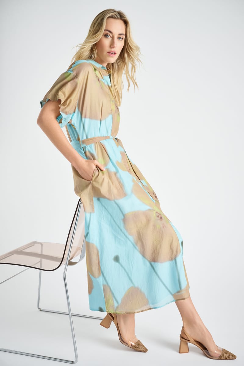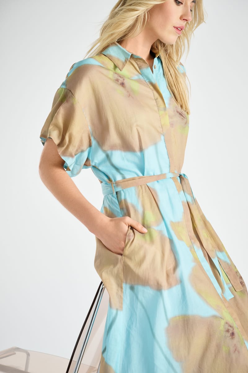 Elegante en stijlvolle hemdsjurk met knoopsluiting, riem en frisse print. Korte mouwen voor de zomer. In luchtige stof, ideaal voor elke een casual-chic gelegenheid op een zonnige dag.