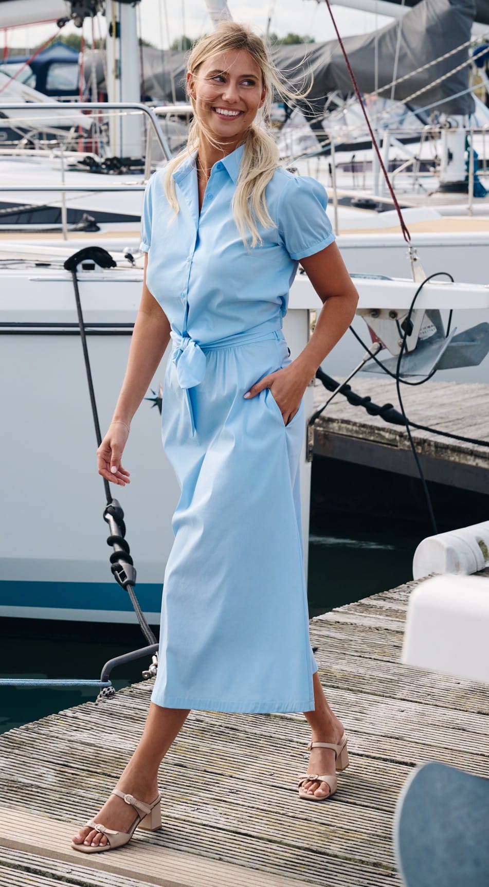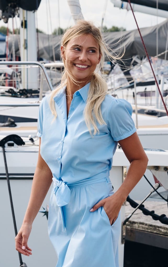 Bloes met kraag en korte mouwen en elastische tailleband op de rug.