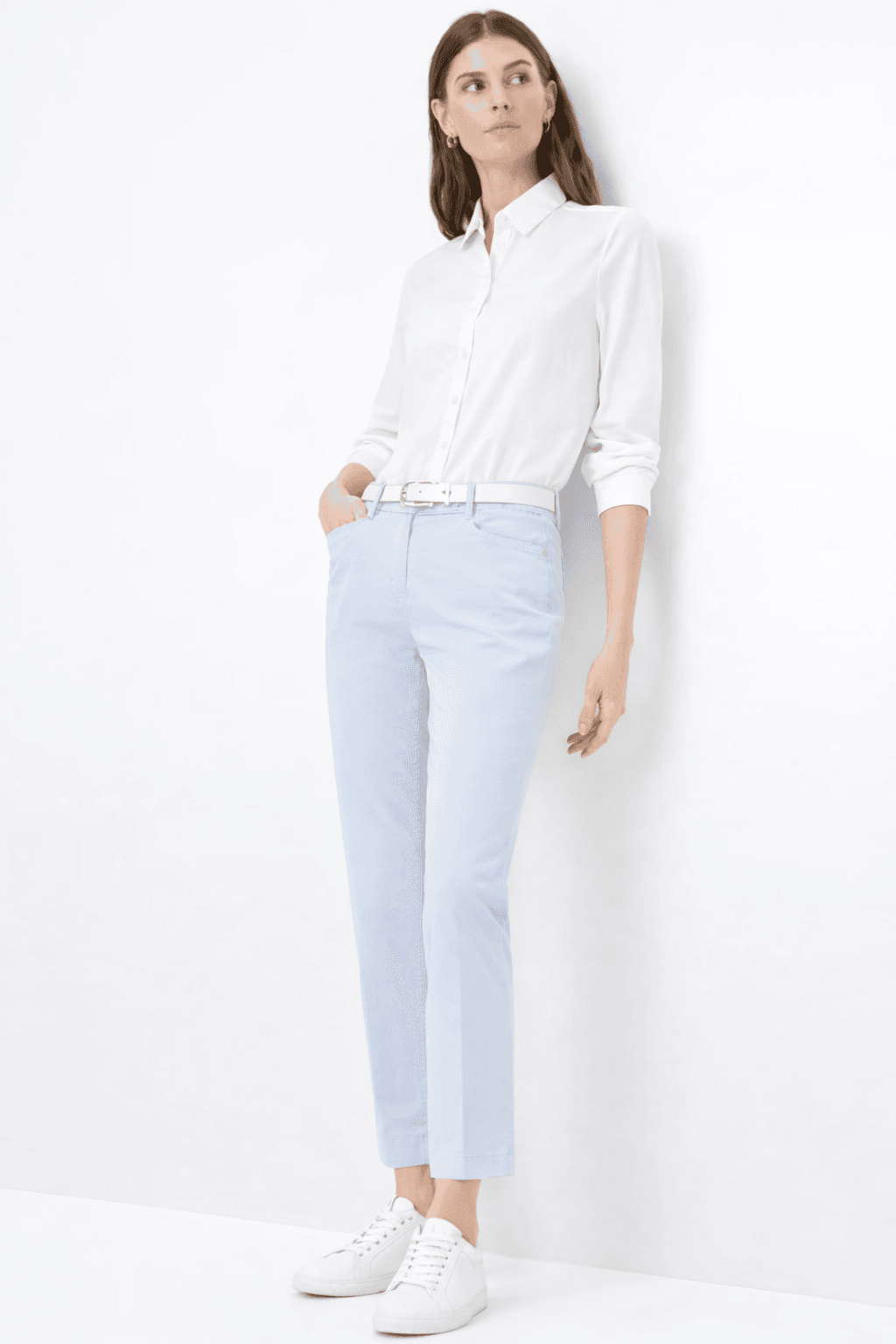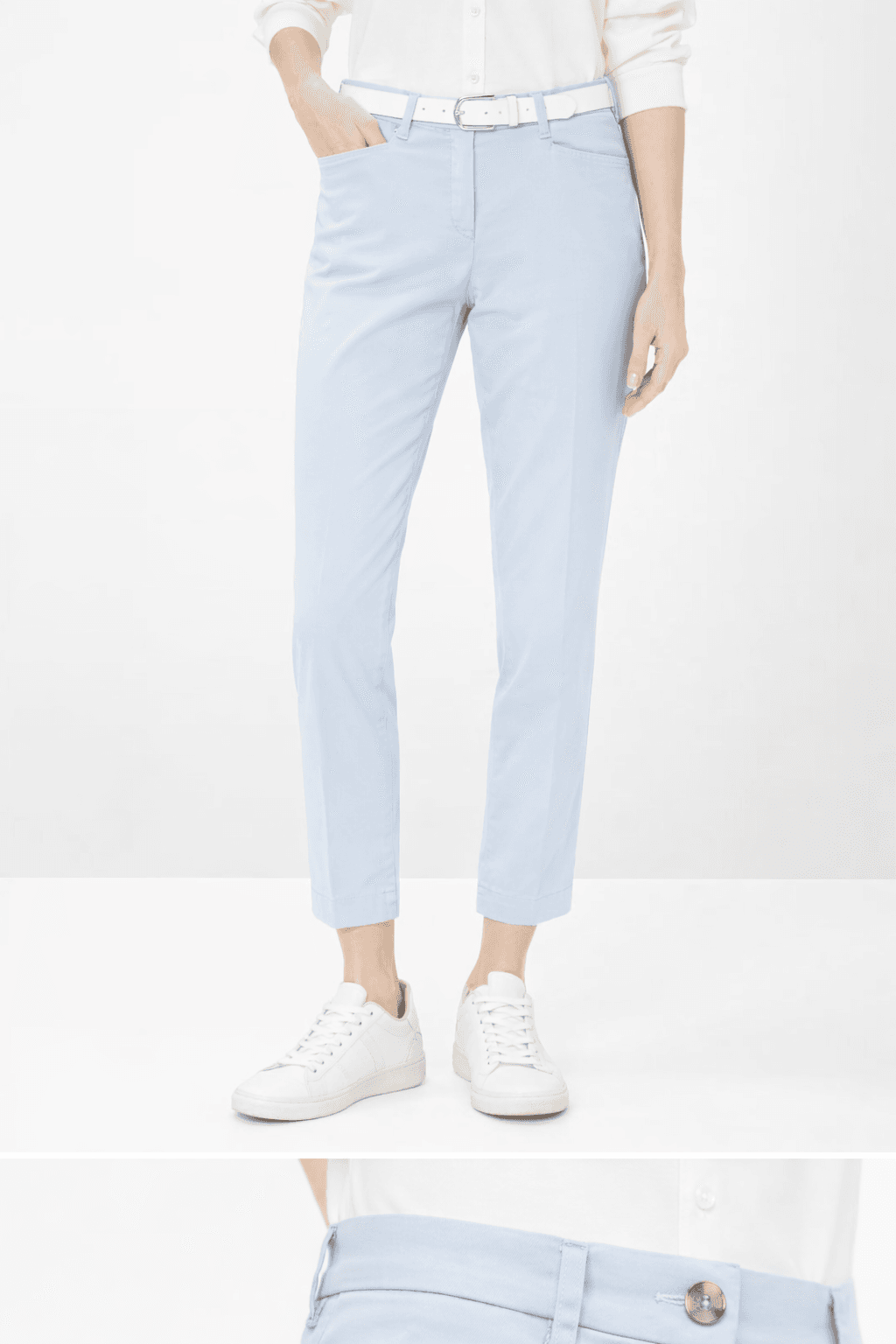 De pasvorm kenmerkt zich door een comfortabele regular fit met een toelopende, verkorte pijp en een normale taillehoogte. Schuine steekzakken en subtiel uitgevoerde paspelachterzakken vormen een harmonieus geheel. De fijne persvouw geeft deze elegante broek een extra klassiek accent. Gemaakt van een Superior Cotton-kwaliteit, overtuigt deze damesbroek met een luxueuze touch en zachte glans. De zachte, gladde satijn van hoogwaardige katoen, ademend lyocell en elastaan zorgt voor een huidvriendelijk gevoel, optimale kleur- en vormvastheid en aangename bewegingsvrijheid.