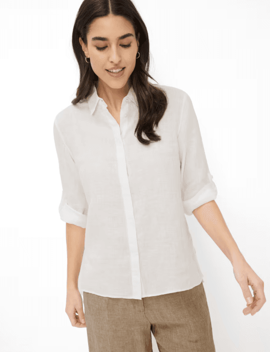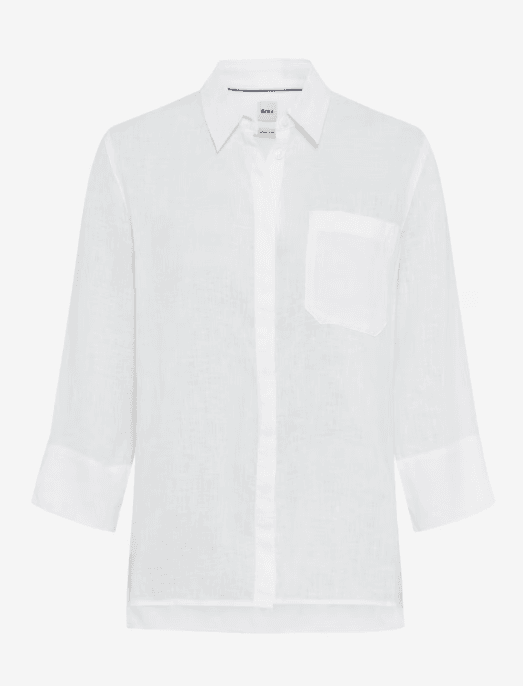 Zomers licht en helder van uitstraling: deze damesbloes geeft een eigentijdse interpretatie aan de klassieker en staat voor ontspannen elegantie met een natuurlijk karakter. Het matig uitlopende silhouet wordt geaccentueerd door stijlvolle driekwartmouwen en een verfijnde manchet met twee knopen, wat zorgt voor een moderne en tijdloze look. Het ontwerp wordt afgerond met een slimme overhemdkraag, een sportieve borstzak en een verborgen knopenlijst. De blouse is veelzijdig te combineren, met lichte denim of een nette chino. Linnen, als puur natuurmateriaal, geeft het design een aangename lichtheid, is ademend en zorgt ook op warme dagen voor een fris draaggevoel. De hoogwaardige linnenkwaliteit staat bovendien voor duurzaamheid en een karaktervolle structuur met een authentieke uitstraling.