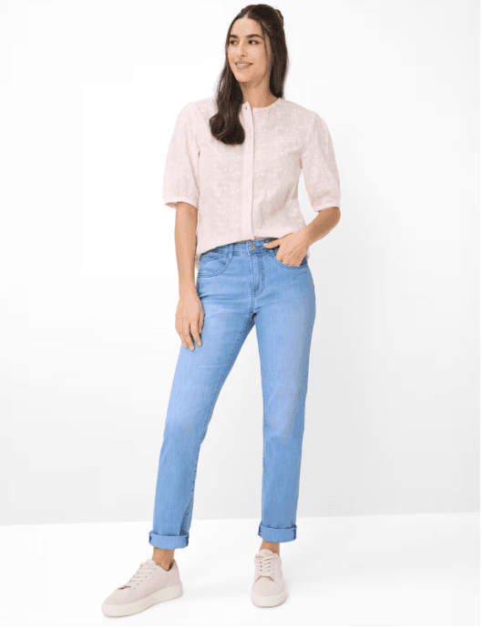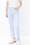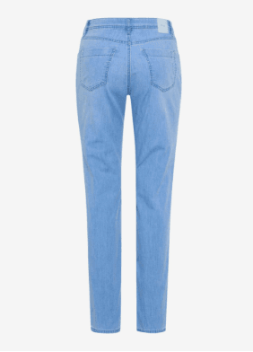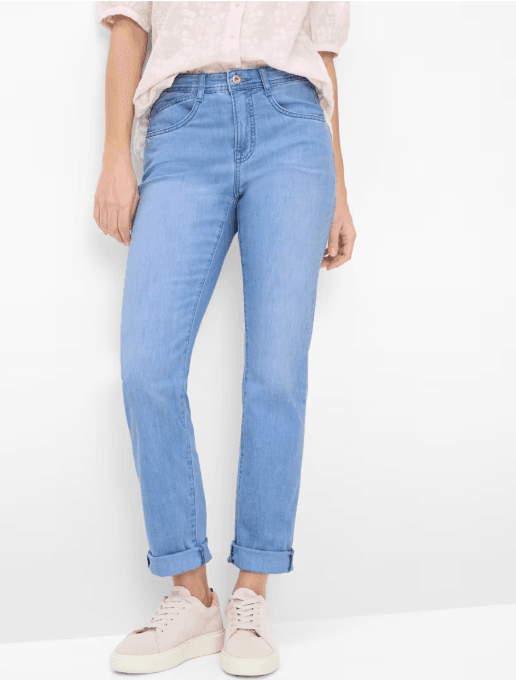 Deze damesjeans volgt het silhouet op aangename wijze in een comfortabele regular fit met een rechte lijn en zit prettig op normale taillehoogte. Karakteristieke steekzakken, een kleine coin pocket en opgestikte achterzakken ronden het typische five-pocket-design af. Optisch maakt de broek indruk met een geslaagde combinatie van klassieke denim-esthetiek en subtiele used-effecten die de sportieve look benadrukken. Een bijzonder hoogtepunt is de materiaalkwaliteit: de innovatieve katoenmix.